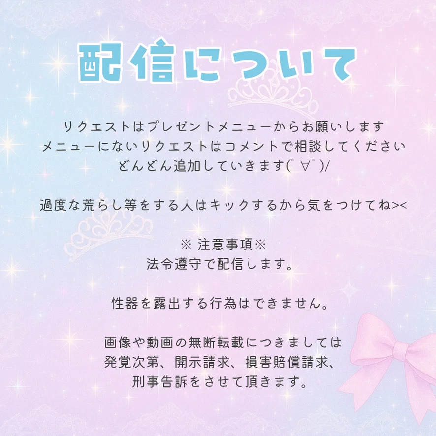 🎀グルチャ🎀 💎16tk/1分、10分~20分程度です。 🎀チケチャ🎀 💎30分~50分ぐらいです。 💎基本的にリクエストはメニューからお願いします💕 💎メニュー以外のリクエストはコメントで相談して下さい💕 ⚠️相談無しのリクエストは答えられない場合もあります。 ⚠️お願い事⚠️ 無理な要求はしないようおねがいします 性器露出はできません 有料中に冗談でも法律違反な事を言ってきた場合は即ブロックさせていただきます。